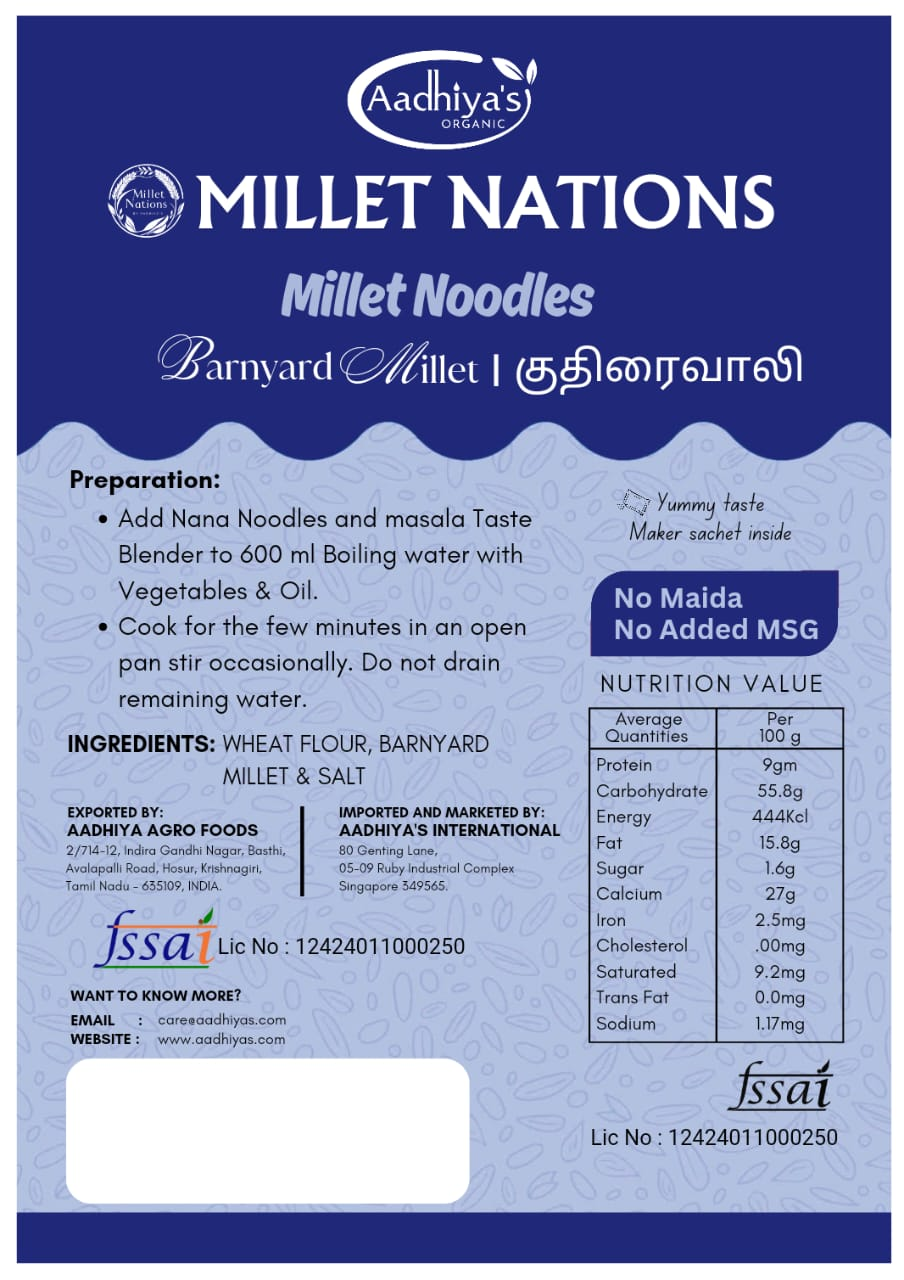 Aadhiya's Barnyard Millet Noodles, made from barnyard millet (Kuthiraivali), offer a nutritious and flavorful noodle experience. These gluten-free noodles are high in fiber and essential nutrients, making them a great choice for health-conscious individuals. Their unique taste and texture enhance a variety of dishes, from stir-fries to soups. Quick to prepare, they fit seamlessly into your busy lifestyle. Enjoy the wholesome benefits of millets with Aadhiya's Barnyard Millet Noodles for a satisfying meal.