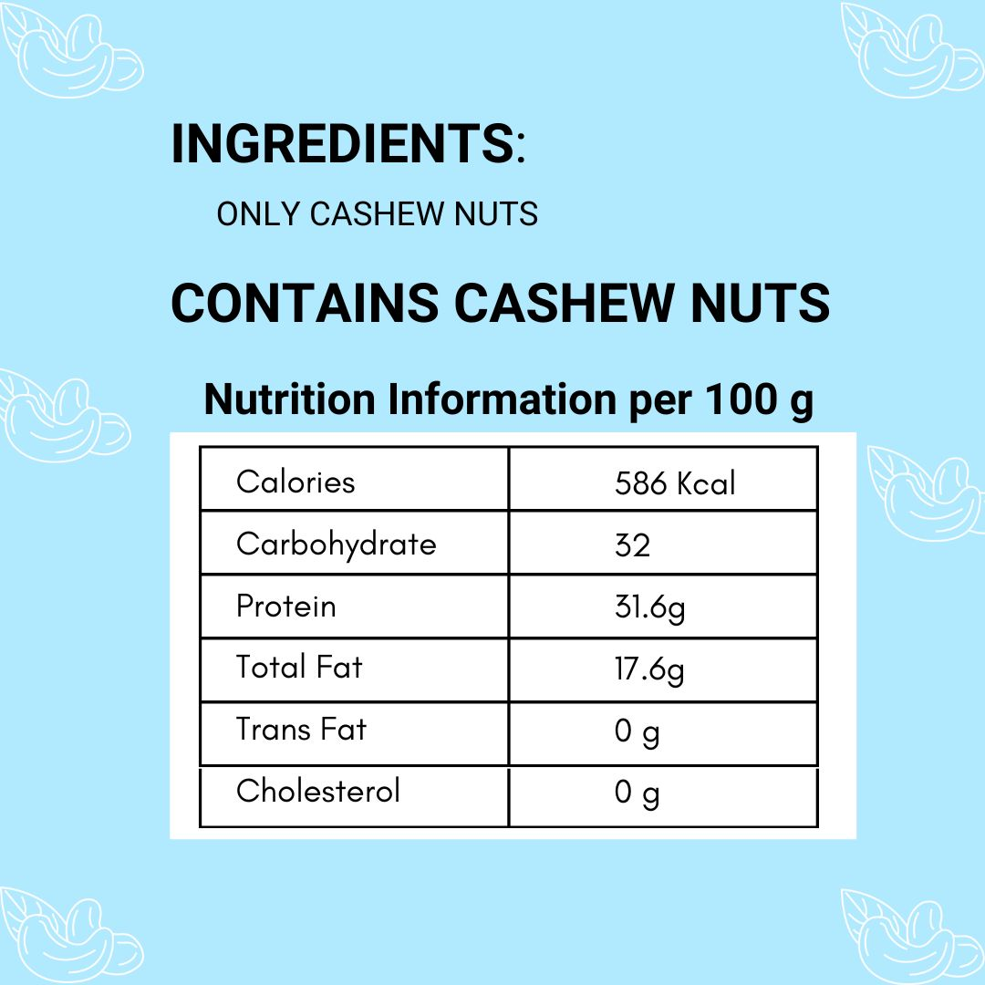 Experience the pure taste of Aadhiya'sPlain / Original Premium Cashew Nuts. These whole cashews are simply roasted to preserve their natural flavor and crunchiness. Perfect for those who appreciate the authentic taste of cashews, they are a great snack option or addition to various dishes. Rich in nutrients and healthy fats, these nuts are a guilt-free indulgence. Enjoy the simplicity and quality of Aadhiya's Original Cashew Nuts, a wholesome treat for any time of day.