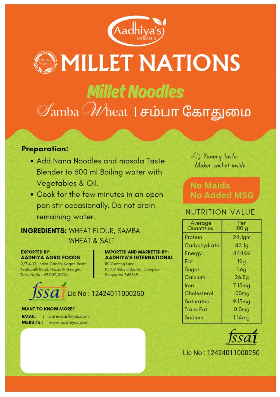 Aadhiya's Samba Wheat Noodles are perfect for those who appreciate traditional flavors with a healthy twist. Made from premium samba wheat, these noodles offer a delightful texture and taste that pairs well with a variety of dishes. Ideal for stir-fries, soups, or cold salads, they are versatile and easy to prepare. Rich in fiber and nutrients, they support a balanced diet. Enjoy the wholesome goodness of samba wheat in Aadhiya's Samba Wheat Noodles for your next culinary creation.