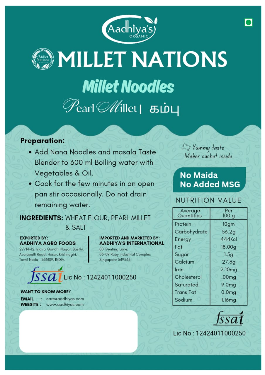 Indulge in Aadhiya'sPearl Millet Noodles, made from nutritious pearl millet (Kambu). These noodles are gluten-free and rich in fiber, making them a healthy choice for all meal types. Their unique flavor and texture make them perfect for a variety of dishes, from pasta salads to hearty soups. Quick to cook and easy to enjoy, these noodles fit seamlessly into your healthy lifestyle. Experience the wholesome goodness of Aadhiya's Pearl Millet Noodles for your next meal.